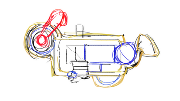 Once I got a rough block-out, I exported a variety of angles to draw over to fill in spaces with detail and start thinking more about the final composition.