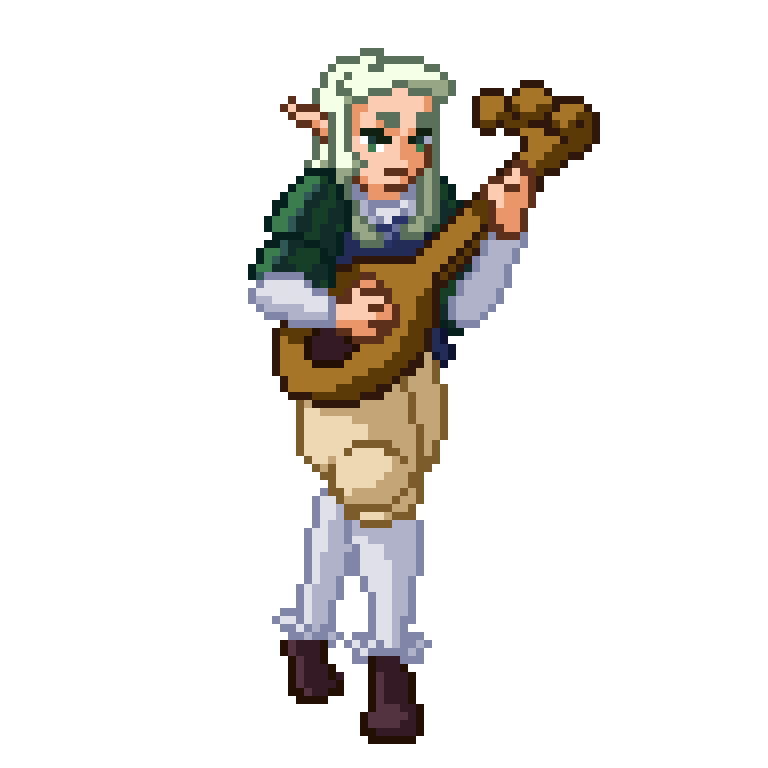 Working on Lone Labyrinth, I first fully fleshed out the designs for the four main characters based on small pixel art sprites. This also meant I developed the more detailed style of the game. Then, I went on to make the portrait art that appears on screen when characters are talking and animated all the in-game battle animations for the main characters. This required both a front, full body view and a back, waist-up view for three of the four characters and the back view for one. Each view required four animations (idle, attack, magic, hurt).
